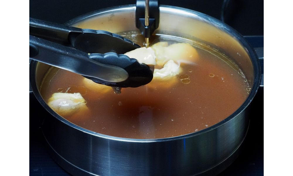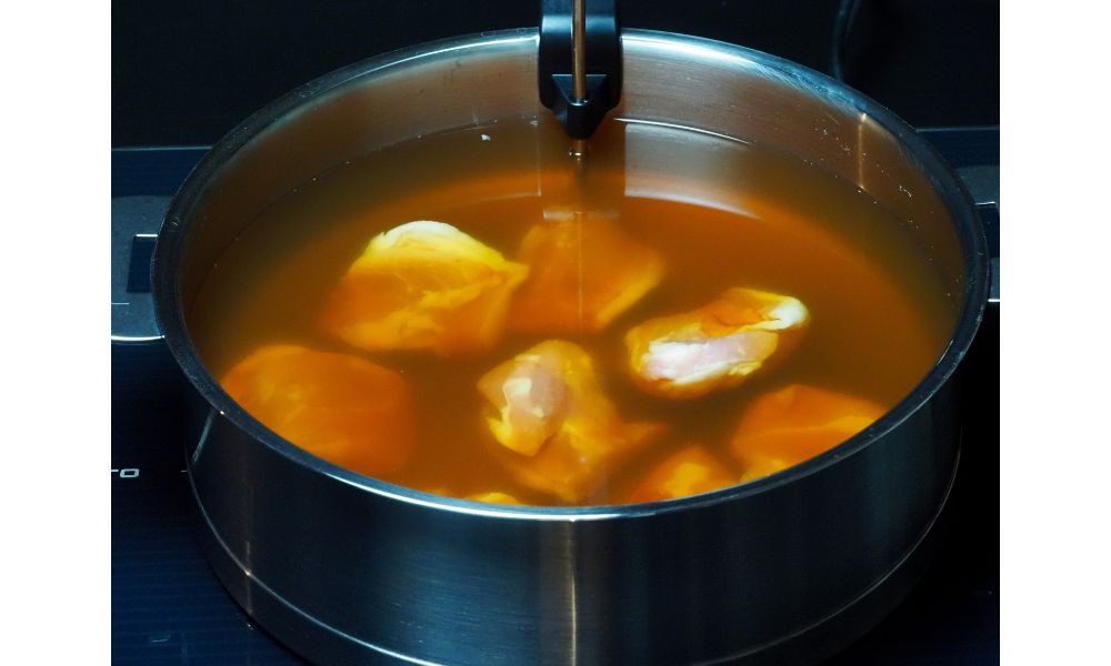 (2)低温調理時に鶏肉の血液が固まるのでアク取りの必要がない