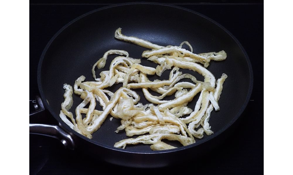 刻んだ油揚げが手に入らない場合は、普通の油揚げ1枚を7〜8mm幅で刻んでください。
