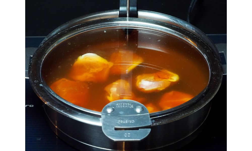 さらに鶏もも肉を入れて65℃で1時間 低温調理します。