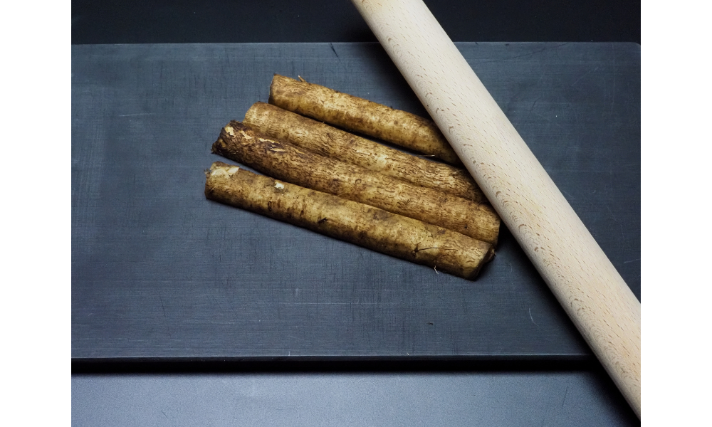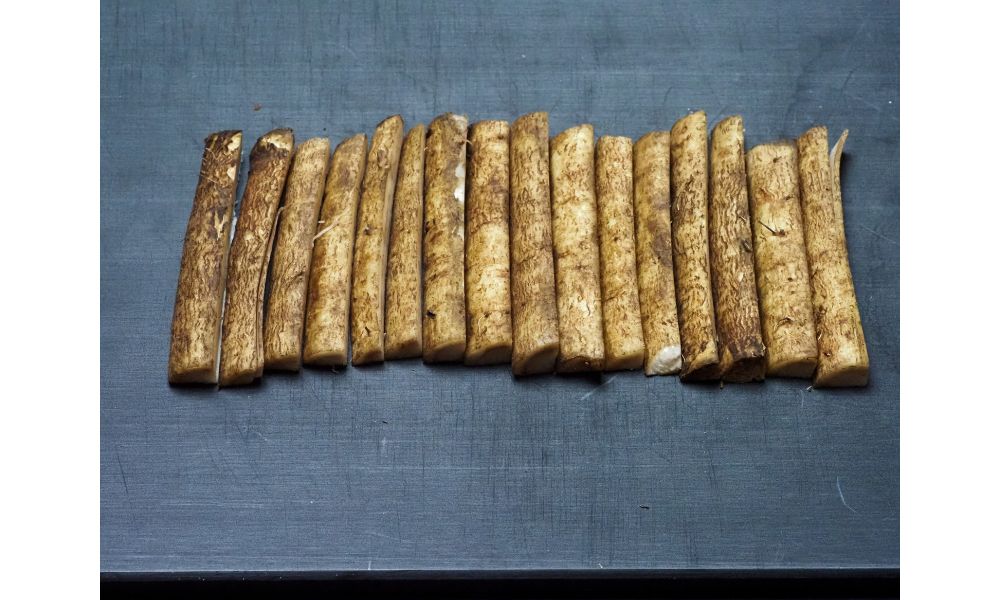 真っ白になるまできれいにするか、この写真ぐらいにとどめておくか、それによってごぼうの「土の風味」の強さが変わります。このあたりはお好みで。