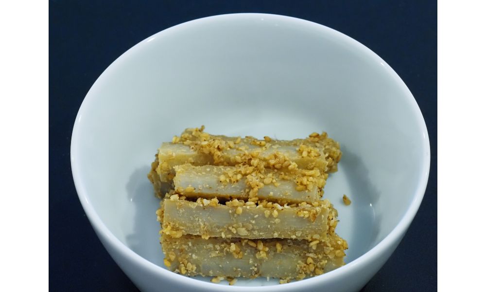 あまりワイルドなのも歯ごたえがすごいので、今回のReproレシピでは下茹で時間=15分といったん決めました。このあたりはお好みで調整してください。