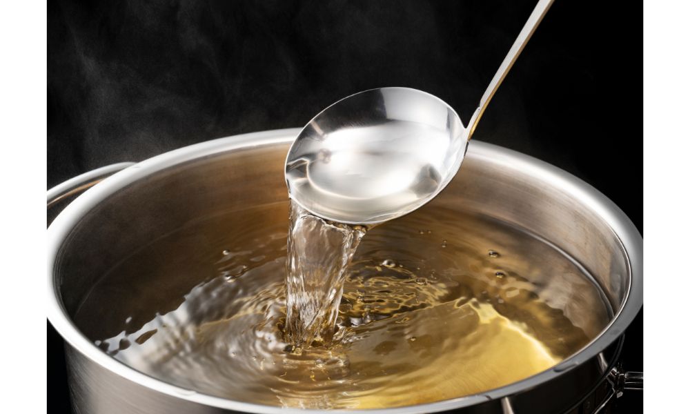 では次に「だしアリ」を作ってみましょう。水(下茹で用)0.5Lを昆布とかつお節の合わせだしに置き換えただけで、基本的な味付けは変わりません。