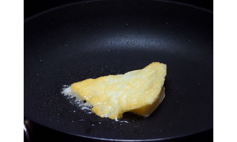 そのまま1分30秒。加熱を一時停止し、一呼吸置いてから剥がすと、きれいにフライパンから剥がせます。