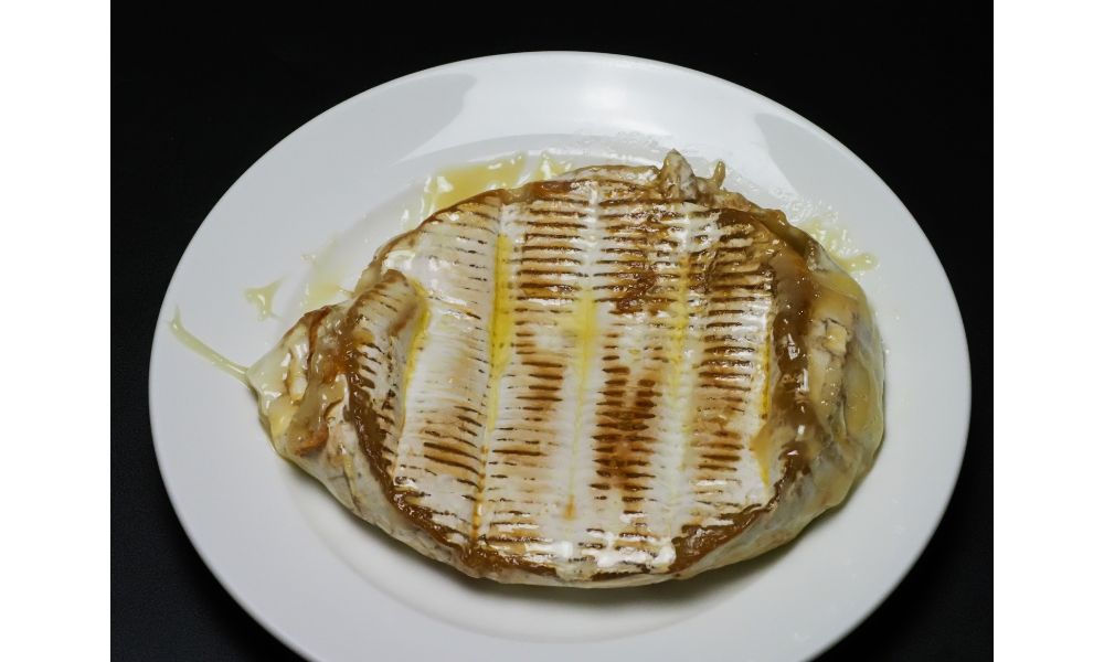 熱でカマンベールはかなり膨張し、溶け出した脂肪でジュージューいってます。