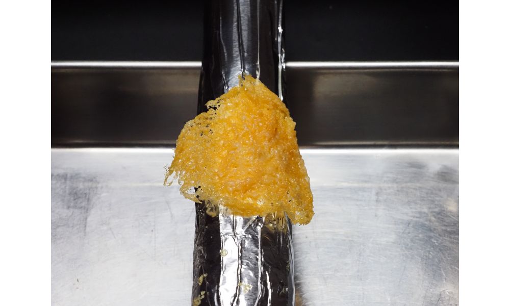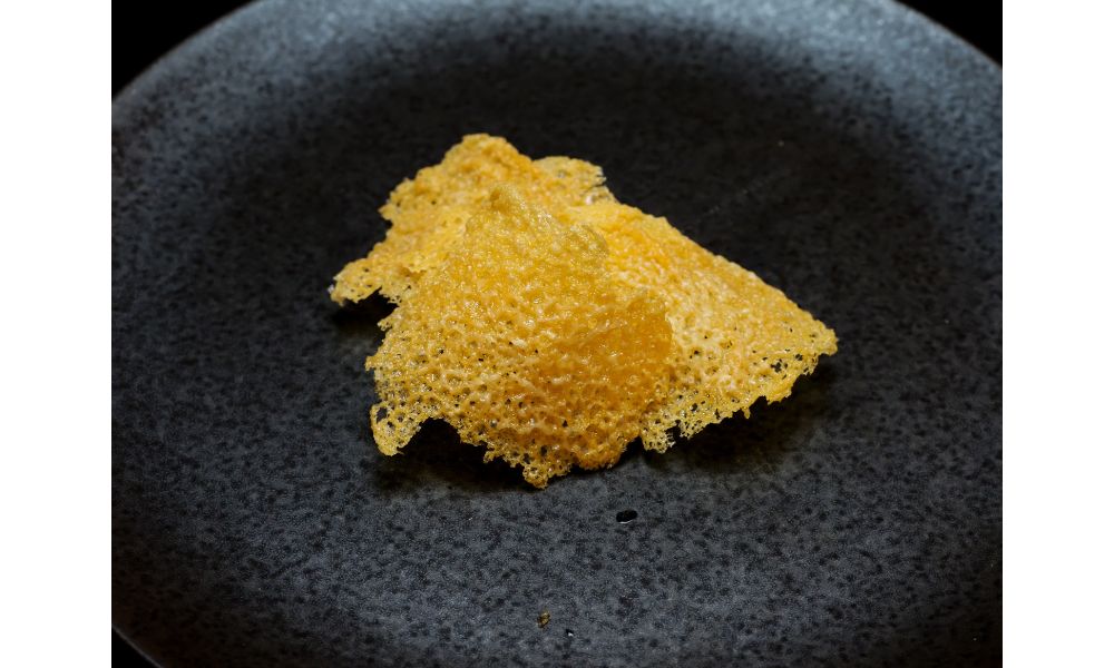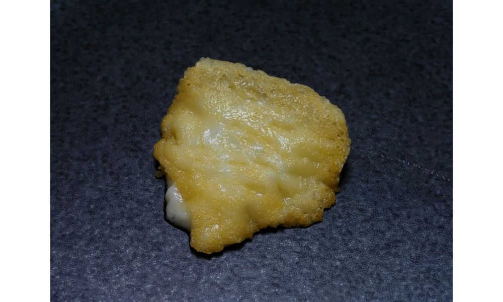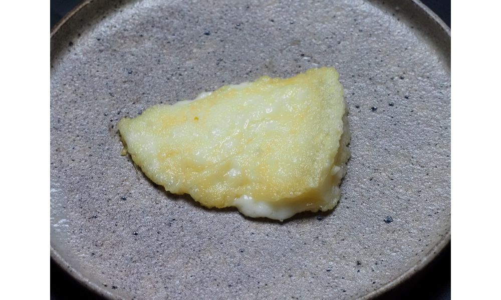 まずパルミジャーノは「チーズの種類」から言うと、最もユルユル化が起きにくいカルシウム分が多いタイプ。さらに「チーズの厚さ」もその料理法から極薄。「焼ける前にとろける」という事態は起きようもありません。パルミジャーノは表面温度=170℃で焼いていきます。