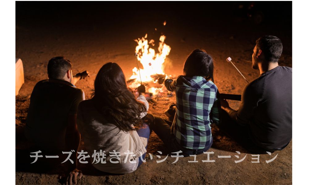一番チーズを焼きたいシチュエーションと言えば、キャンプの焚き火で焼く時ですかね。