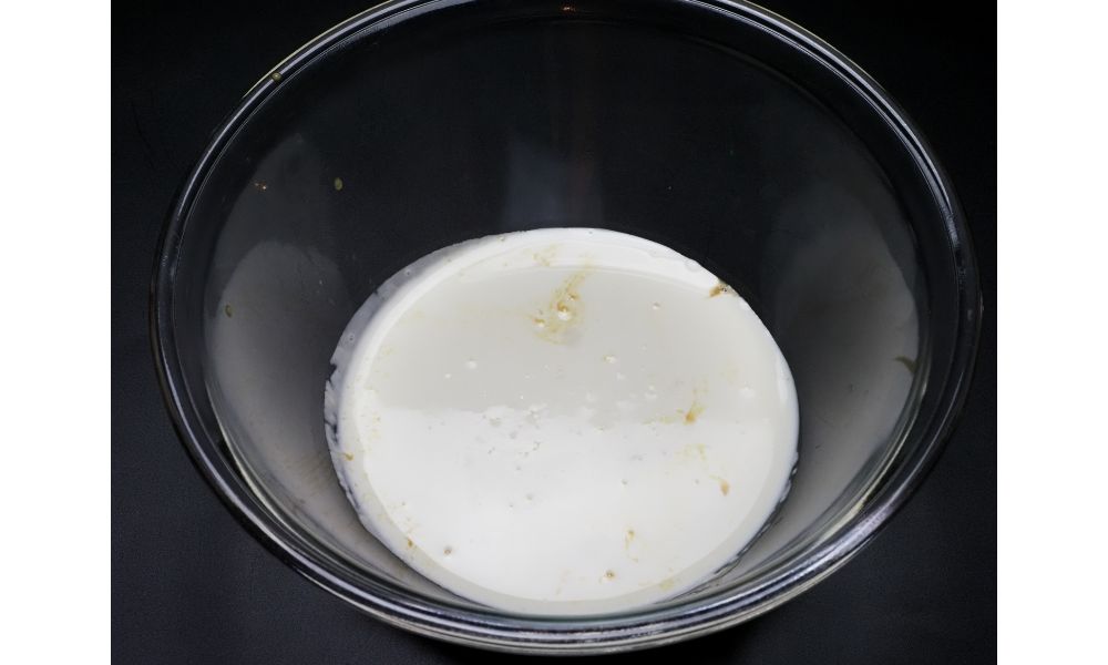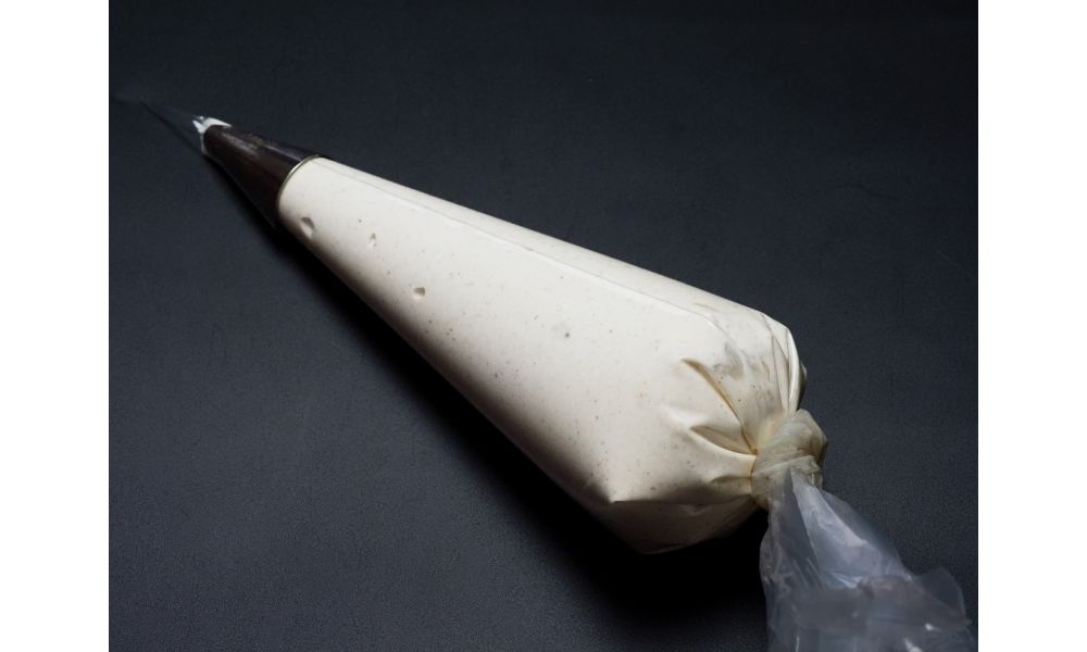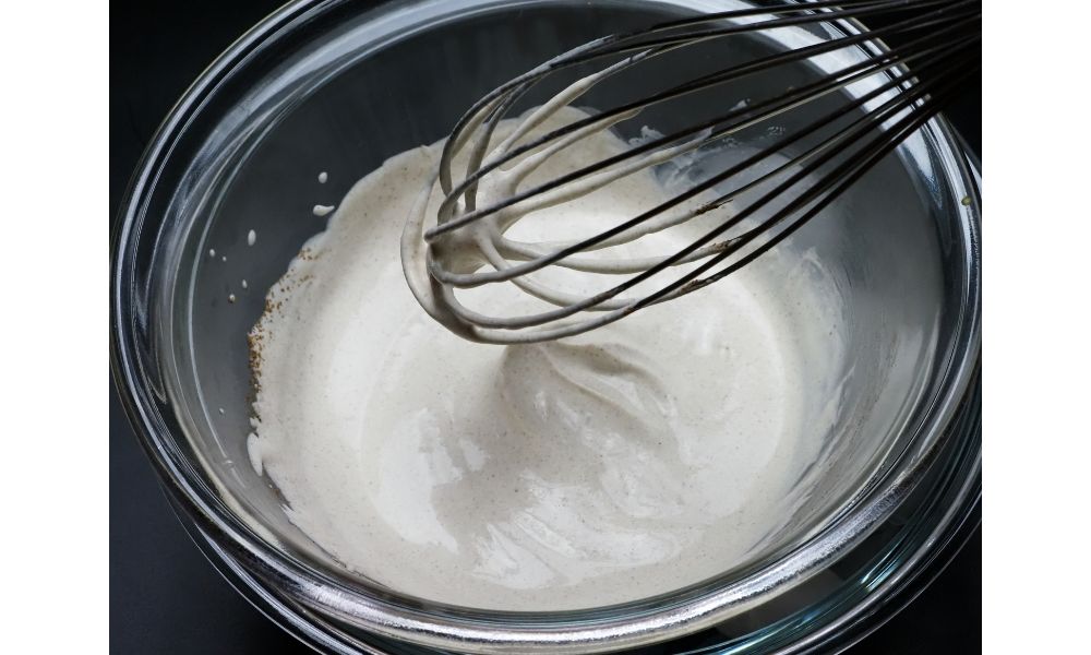 生クリームとフルール・ド・セルひとつまみを投入して、軽くホイップします。ビネガーが入っているので簡単に固まりますが、念のため氷水でボウルを冷やしながら作業をしましょう。
