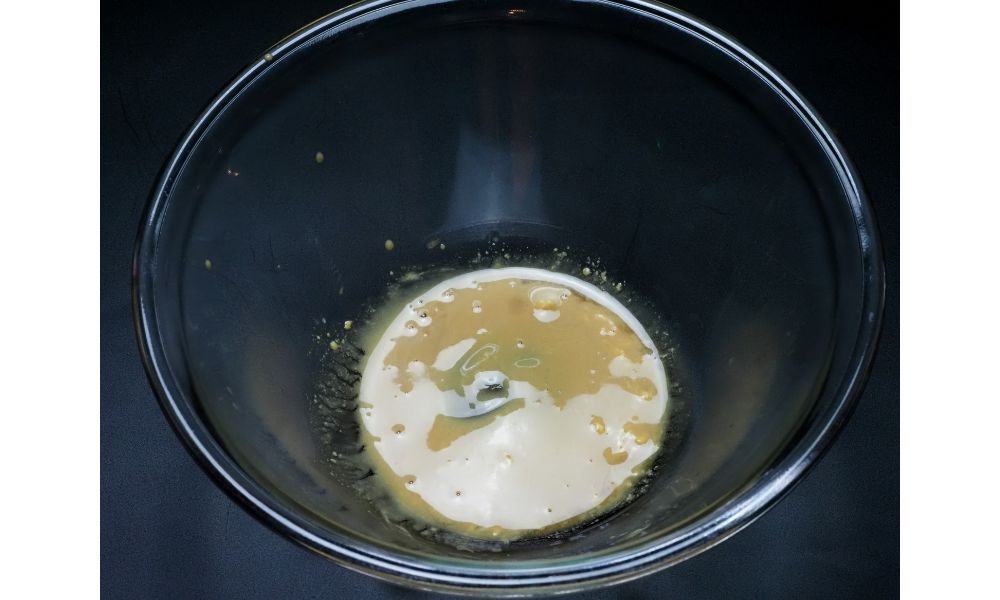 まずボウルにマスタードとシェリービネガーを入れて混ぜ合わせます。