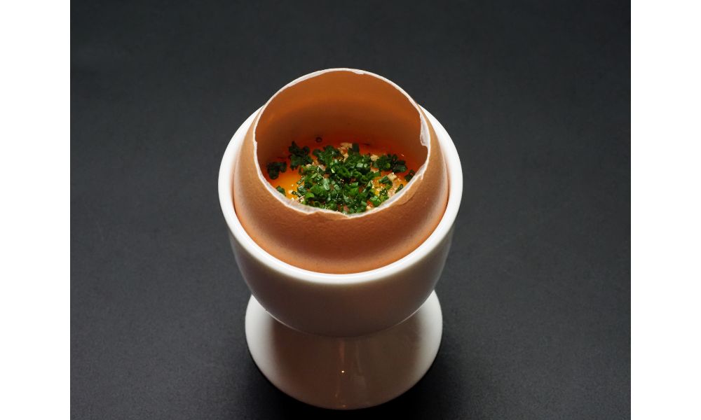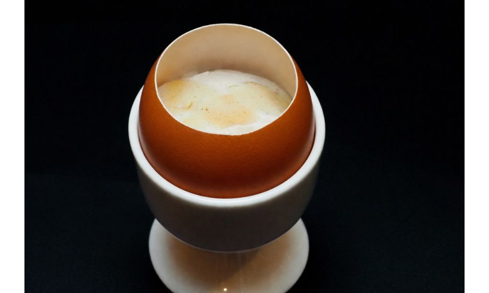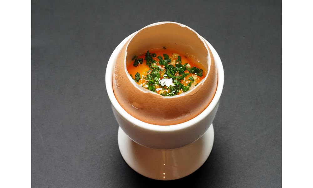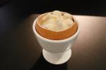 エッグトッパー(クープドウッフ)でたまごの殻をカットします。滝本シェフはエッグトッパー1発で爪を入れて殻を取り外していましたが、真似をしてみるとこれが結構難しい。