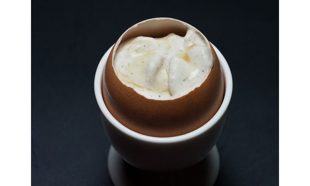 仕上がりイメージ=フチの卵白が白く固まり、殻の底が十分熱くなったら