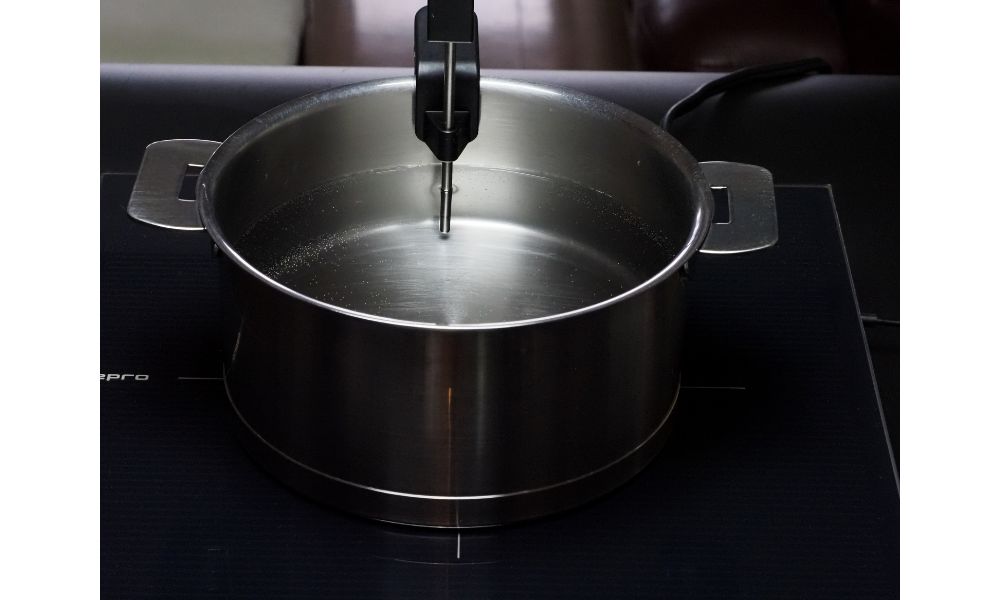 Reproに鍋を置いて加熱スタート。設定温度を何℃にするか悩ましいです。